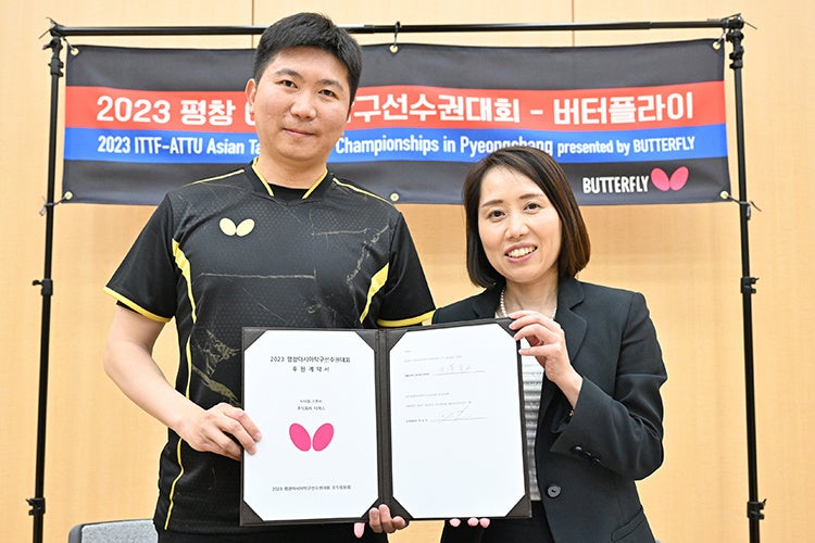 このたびはバタフライに協賛いただいたことに深く感謝申し上げます。今回のアジア卓球選手権大会は2024年世界卓球釜山大会の出場権がかかった重要な大会であり、アジアのトップレベルの選手が参加する予定ですので、必ず成功を収めたいと思います。