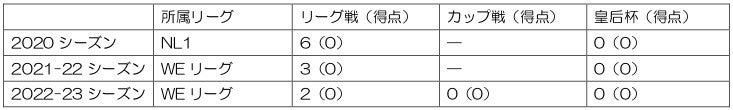 ■経歴 :バディ FC ― 日テレ・メニーナ ― 慶應義塾大学体育会ソッカー部女子 ― ノジマステラ神奈川相模原