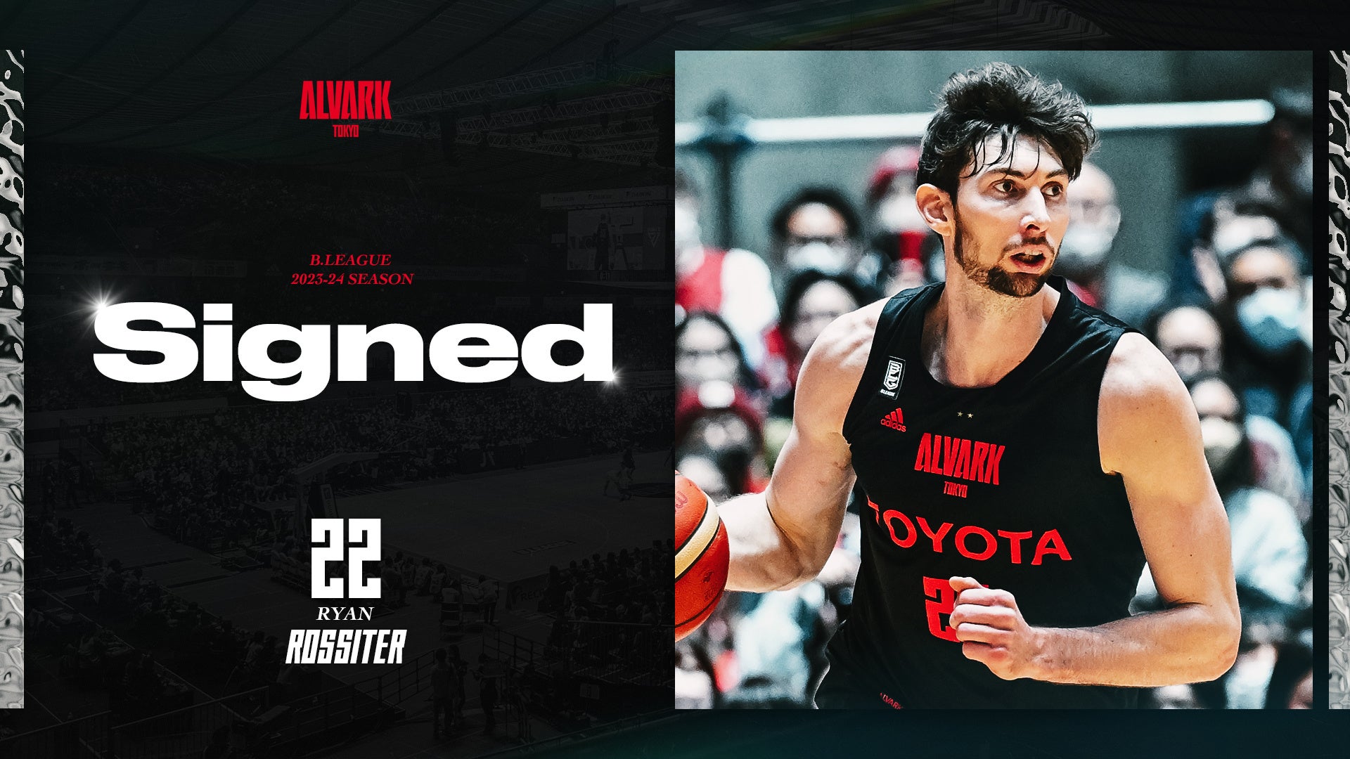 この度、アルバルク東京では、#22 ライアン・ロシター選手とのB.LEAGUE 2023-24シーズンの選手契約継続が決定いたしましたので、ご報告させていただきます。