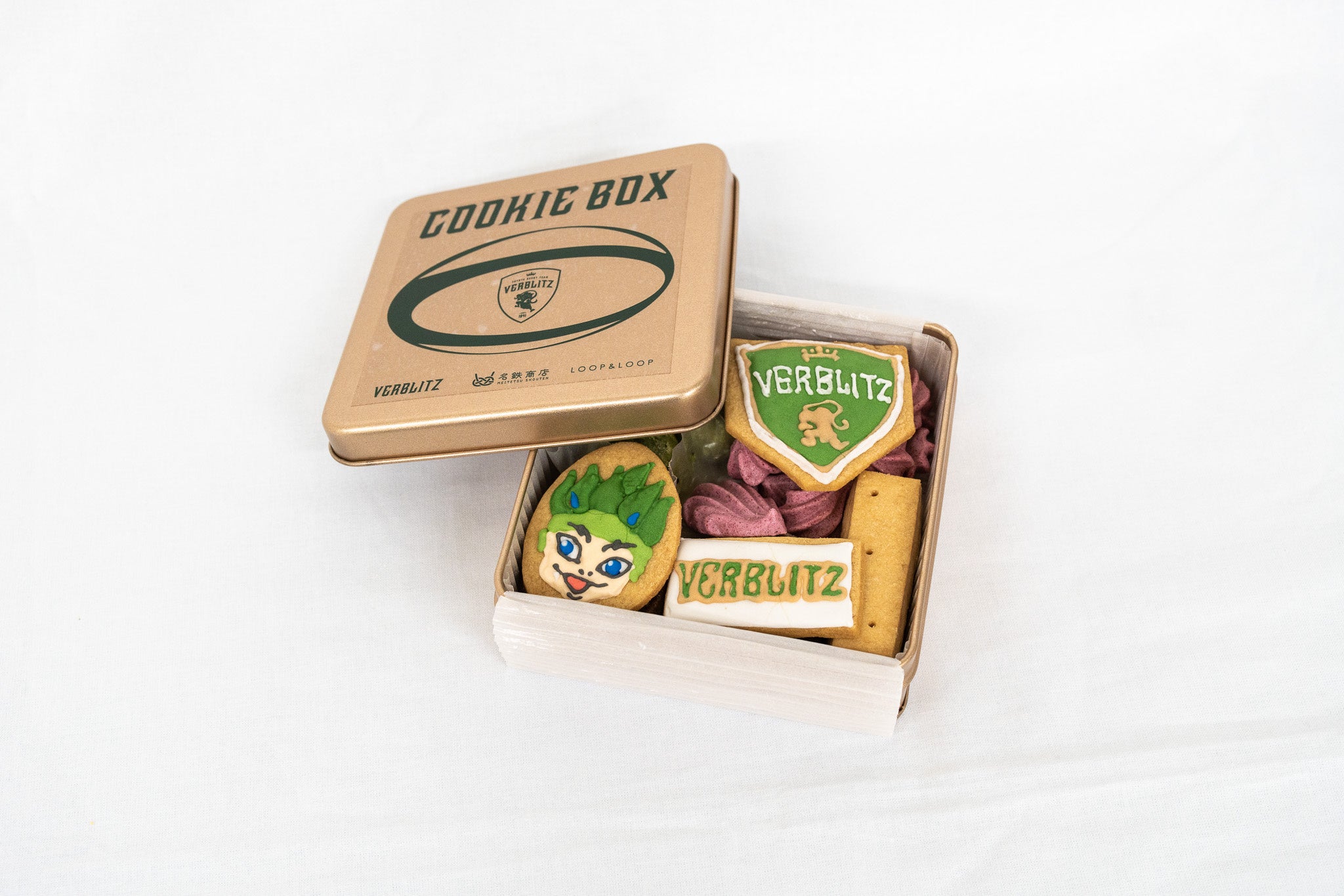 トヨタヴェルブリッツのロゴやマスコットキャラクター「ライガーくん」のアイシングクッキーが入ったCOOKIE BOX。ファン感謝デーで先行販売した際は即完売!「ライガーくん」のアイシングクッキーが可愛すぎて食べられないと、ファンからも大好評!