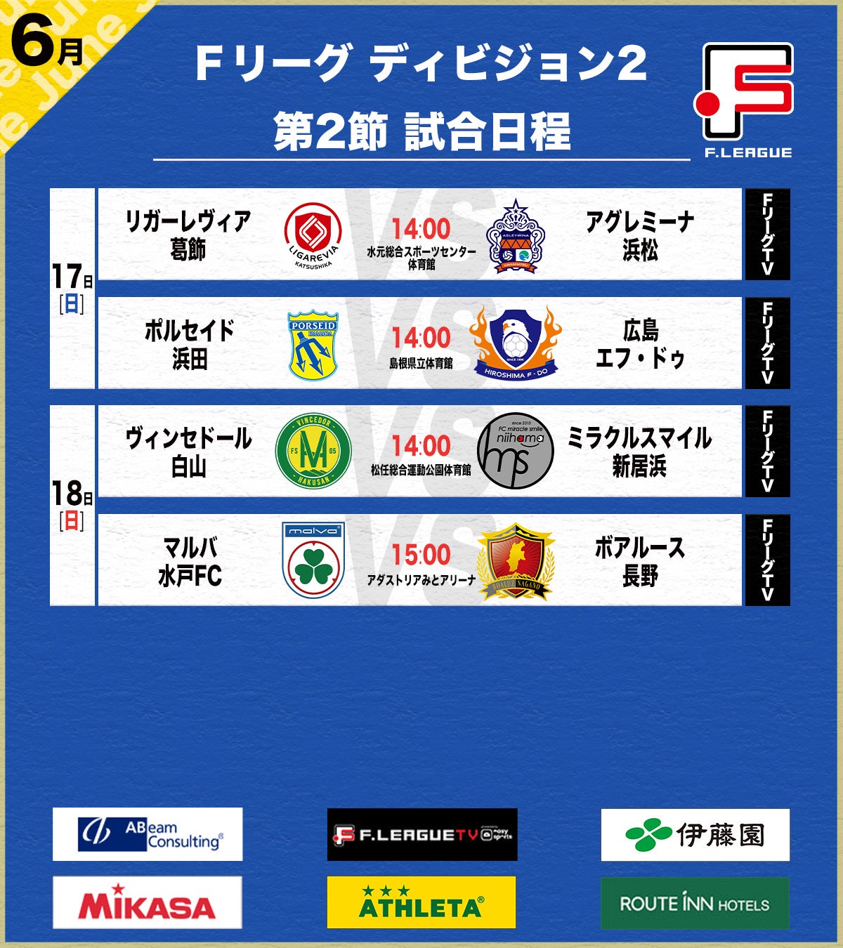 14:00 葛飾vs浜松▶▶https://fleague.stores.play.jp/lives/97fbf6d1-5267-408a-bc42-02eace87d3dc