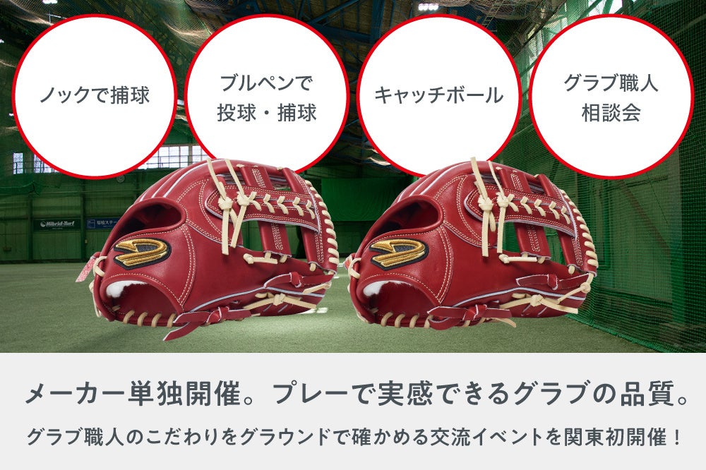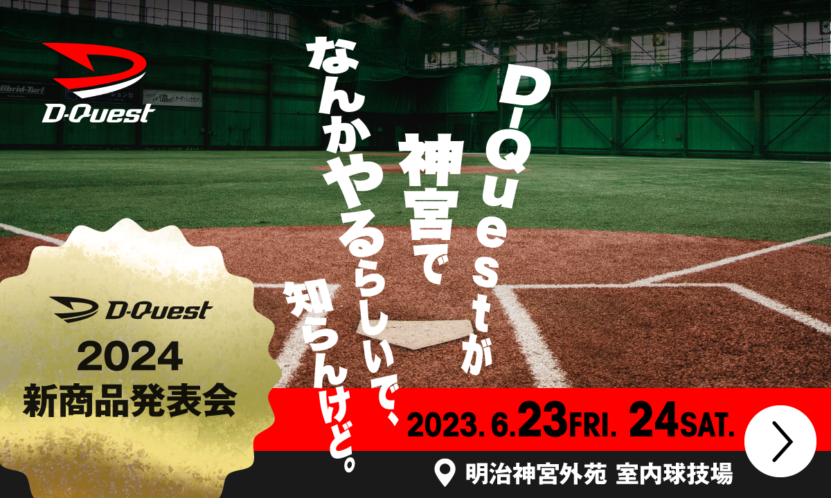 実体験を通したD-Questブランドの「楽しさ」をユーザーと共有したい。その思いから選んだ場所は、東京ヤクルトスワローズ球団が使用する「神宮外苑 室内球技場」。WBCの記憶も新しい村上選手や山田選手が練習するグラウンドで、D-Questのグラブの感触を実感いただくイベントを開催します。当日は、企業様をはじめ、店舗から招待した一般ユーザーをお招きした、東京初開催の交流イベントとなります。グラブ職人と触れ合える機会やゲームも開催予定です。
