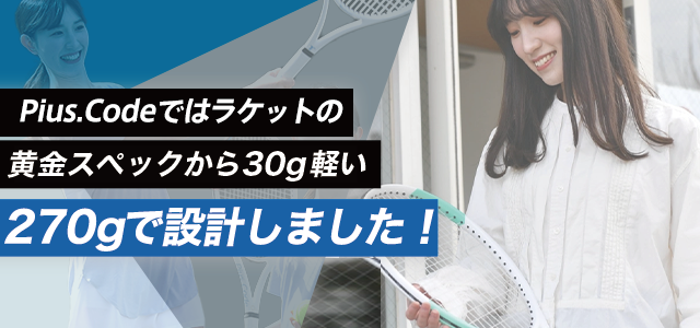 【Pius.Code】ではラケットの黄金スペックから30g軽い、270gで設計。