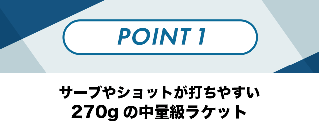 ラケットの重心が先端に近いため軽いラケットでも遠心力が働きやすく、