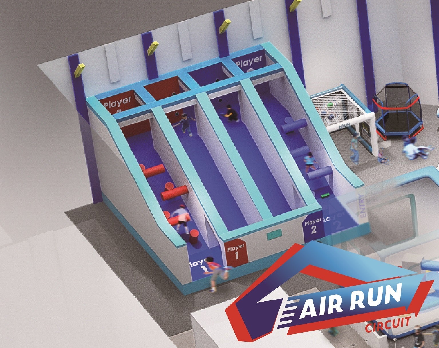 子どもから大人まで安全に楽しめる新感覚エアー障害アスレチックコース。障害物を避けてかけのぼり、ボタンをタッチして、巨大スライダーを滑ろう!ボタンをタッチした回数が多い人が勝利!全身で、全力で楽しめるアクティビティ!