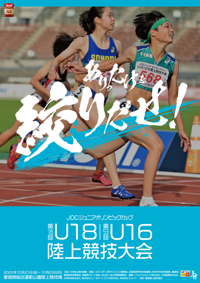 2023年10月20日(金)~22日(日)に愛媛県総合運動公園にてジュニアカテゴリー日本最高峰の大会となる「第17回U18陸上競技大会」および「第54回U16陸上競技大会」を同日開催いたします。