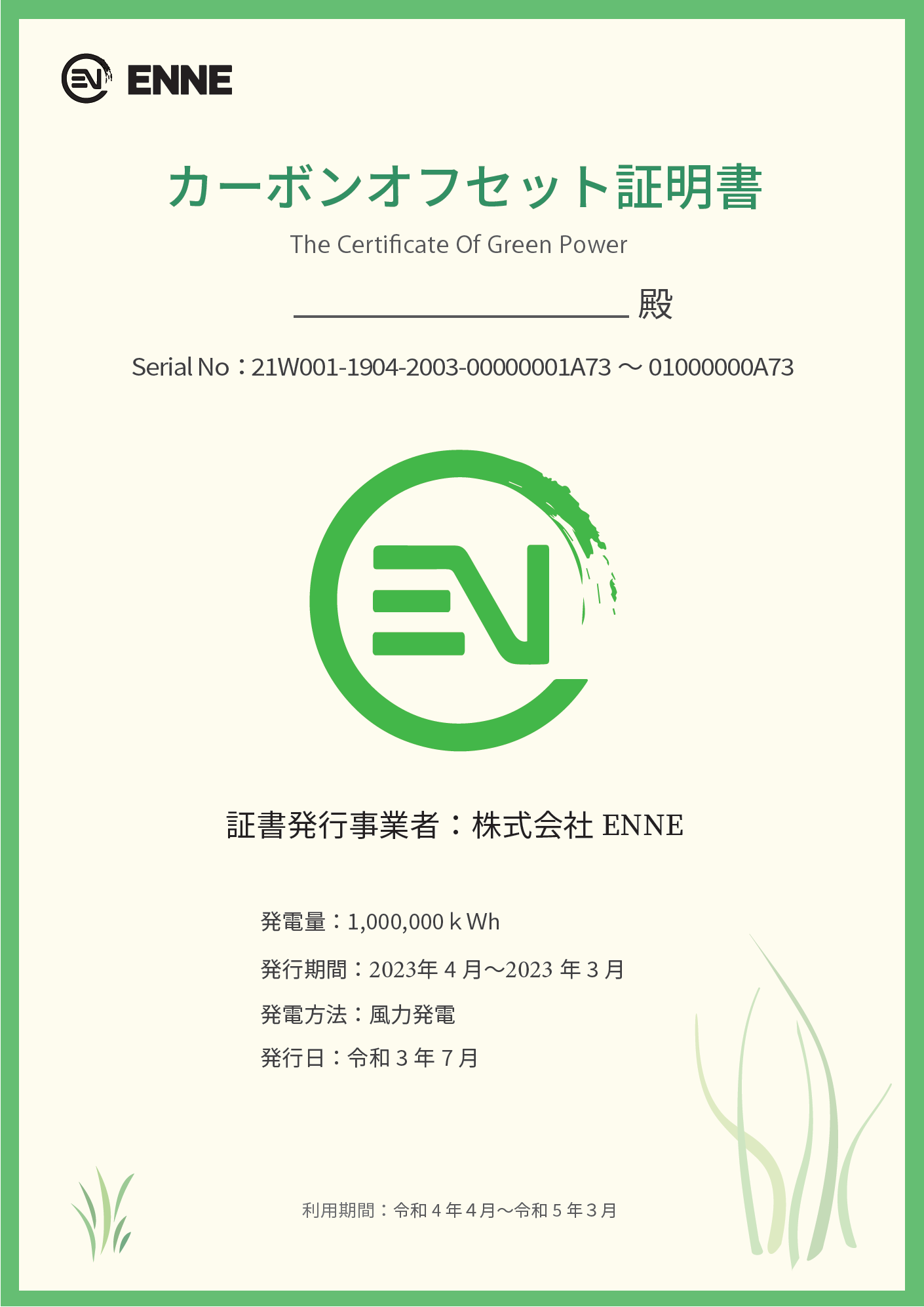 計算方法はグリーンエネルギー証書の発行機関である当社グループ会社のノウハウを元に日本品質管理機構(JQA)の定める基準を用いて計算いたします。