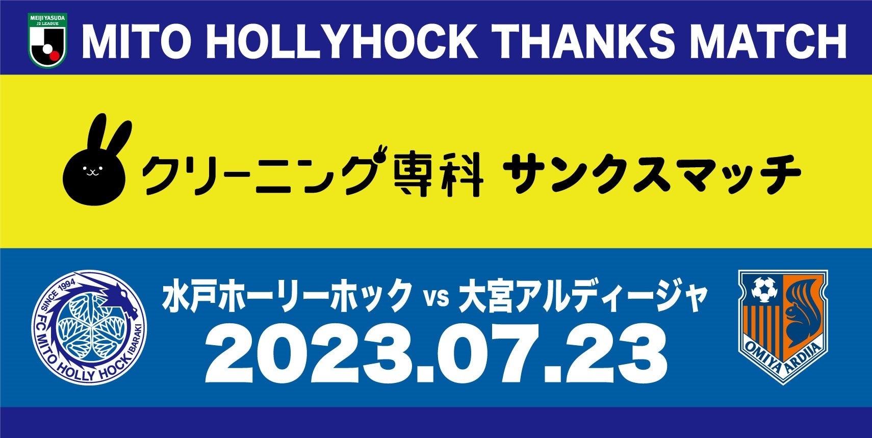 株式会社フットボールクラブ水戸ホーリーホック(以下、水戸ホーリーホック)は、7月23日(日)に開催します2023明治安田生命J2リーグ第27節 水戸ホーリーホック vs. 大宮アルディージャ戦を、株式会社ユーゴー様にご支援いただき『クリーニング専科サンクスマッチ』として開催することとなりましたので、下記の通りお知らせいたします。