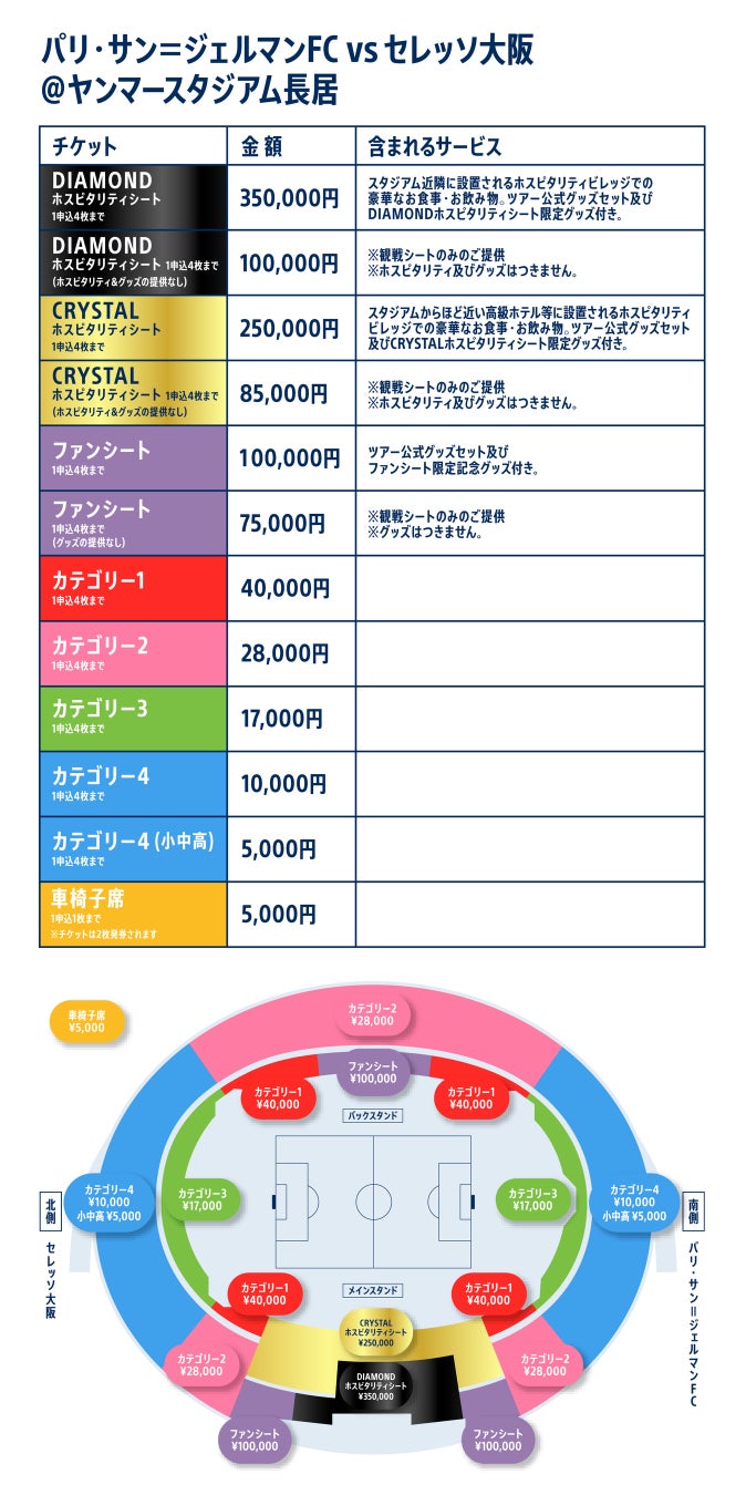 ※【完売】カテゴリー3 PSG側、カテゴリー4 セレッソ大阪側ならびにPSG側