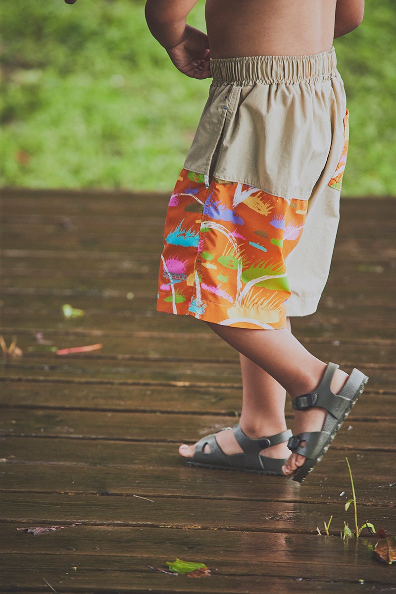 「くさむら」は、草むらに入ったボールが、読者を草むらの中に案内する色彩豊かな絵本です。草むらに投げられたボールは子どもたちの気持ちそのもので、子どもたちの目には草むらがこんな風にカラフルに躍動的に映っているんだと感じ、この絵本柄の水着を着て水とあそんだら、たとえそこがベランダの小さなプールだとしても、草むらを走り抜けながら水とあそんでいる、そんな気持ちになってもらえることを期待して企画しました。