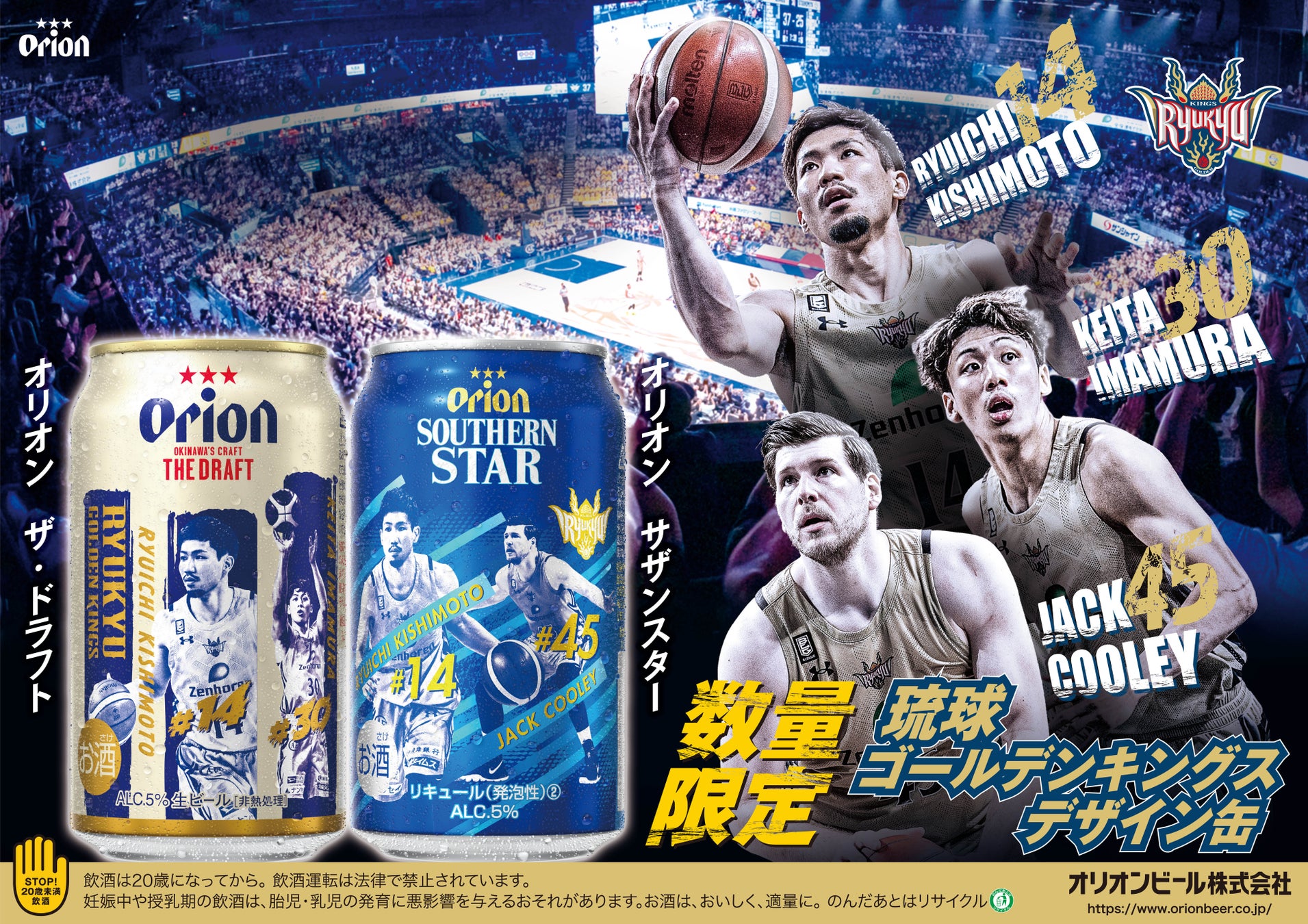 この度、キングスのオフィシャルパートナーであるオリオンビール株式会社より「オリオン ザ・ドラフト 琉球ゴールデンキングスデザイン缶」並びに「オリオン サザンスター 琉球ゴールデンキングスデザイン缶」を数量限定で販売します。