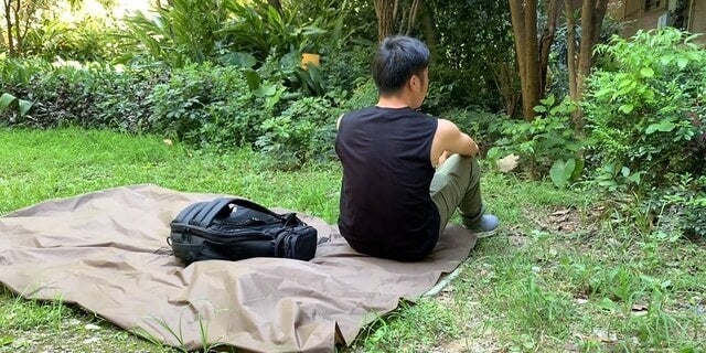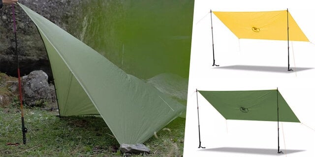 小さく畳めて手のひらサイズ!重さは僅か275gなのにタープとして展開できる優れものです。もちろん日除けだけでなく雨風から荷物や体を守ることもできます。