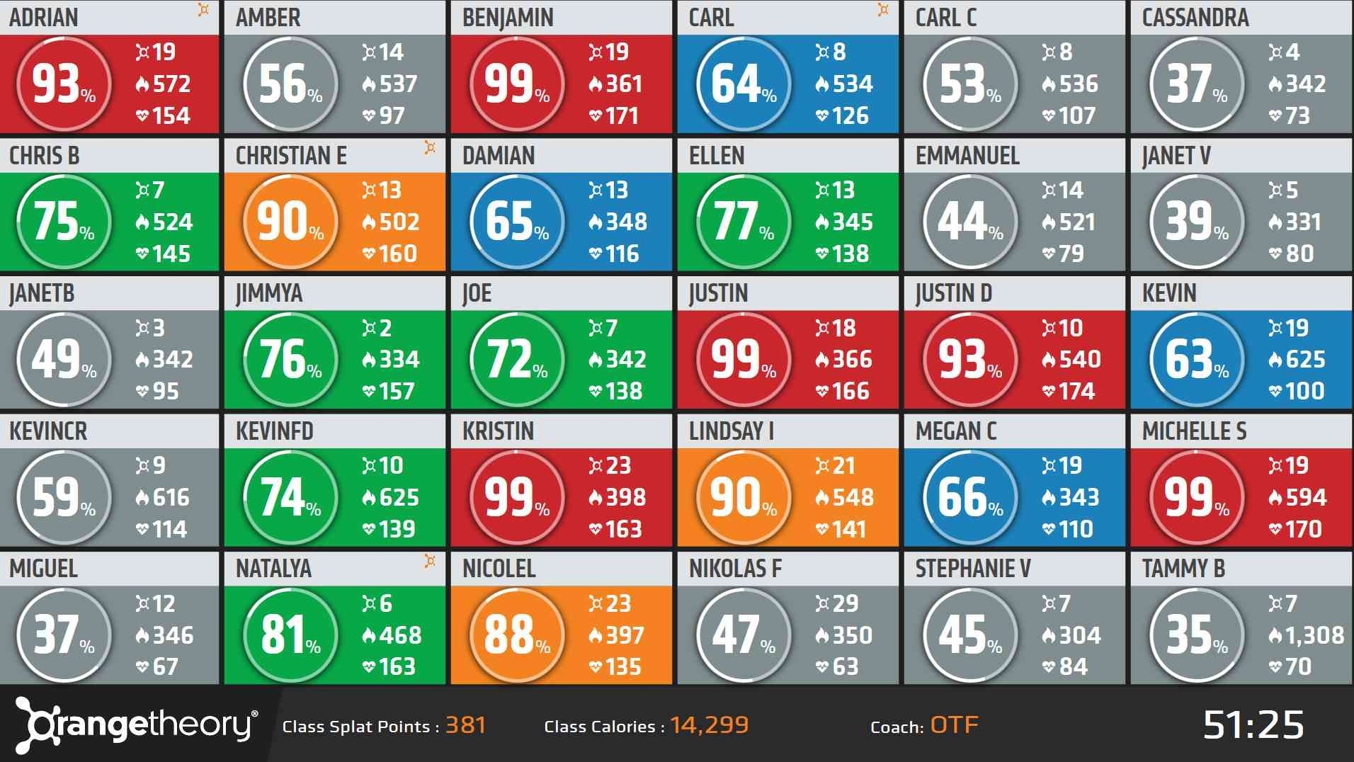 クラスは最大24名のグループパーソナル・トレーニングの形で行われ、参加者1人1人の心拍数をモニターでリアルタイムにチェックしながら、60分の中で最大心拍数の84%以上を計12分間以上維持することを目標とします。