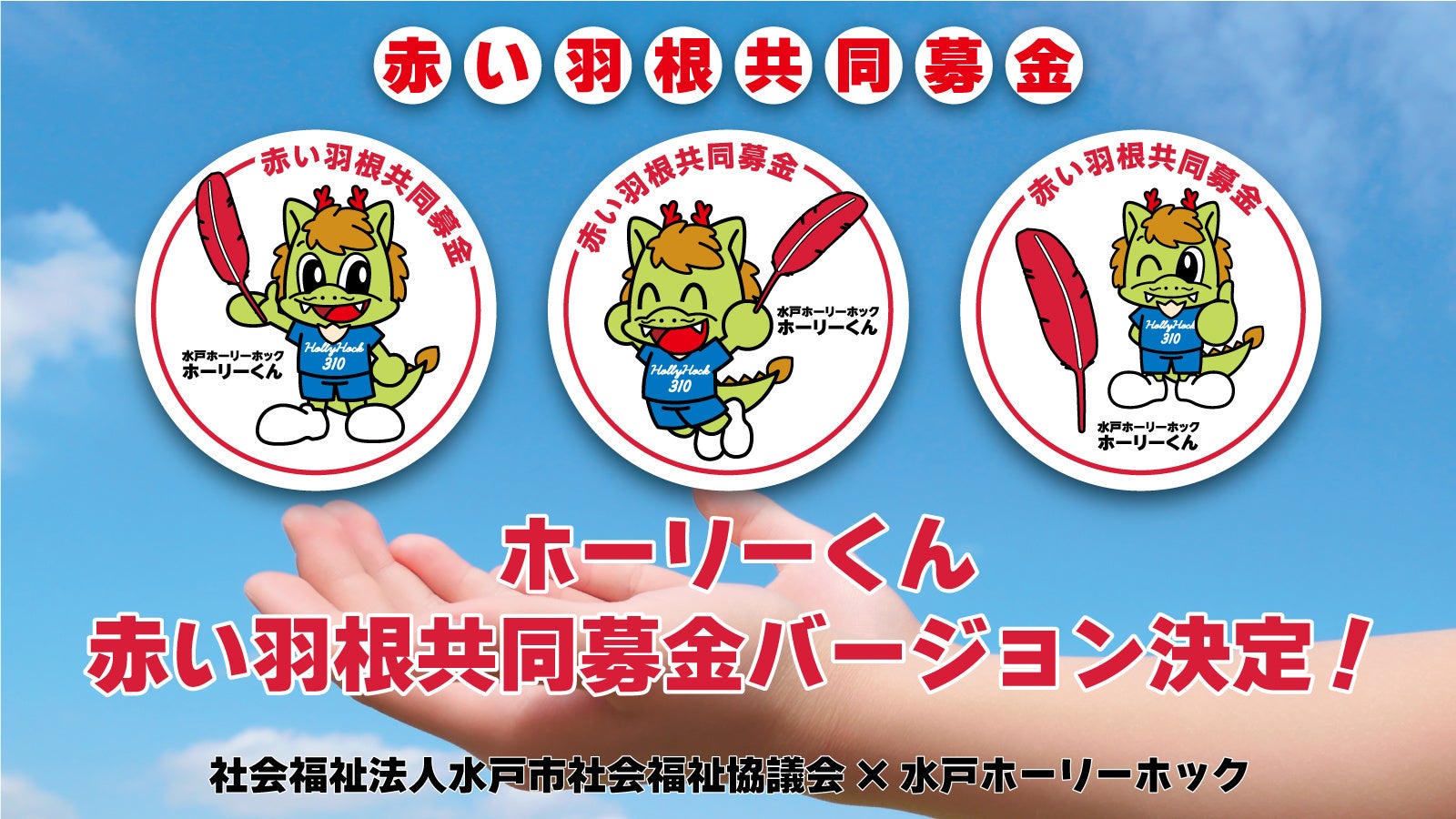 水戸市社会福祉協議会との協力体制に関する協定をうけ、たくさんの方に赤い羽根共同募金について興味と理解をしていただくことを目的として、オリジナルバージョンのホーリーくんデザインが3種類完成しました。