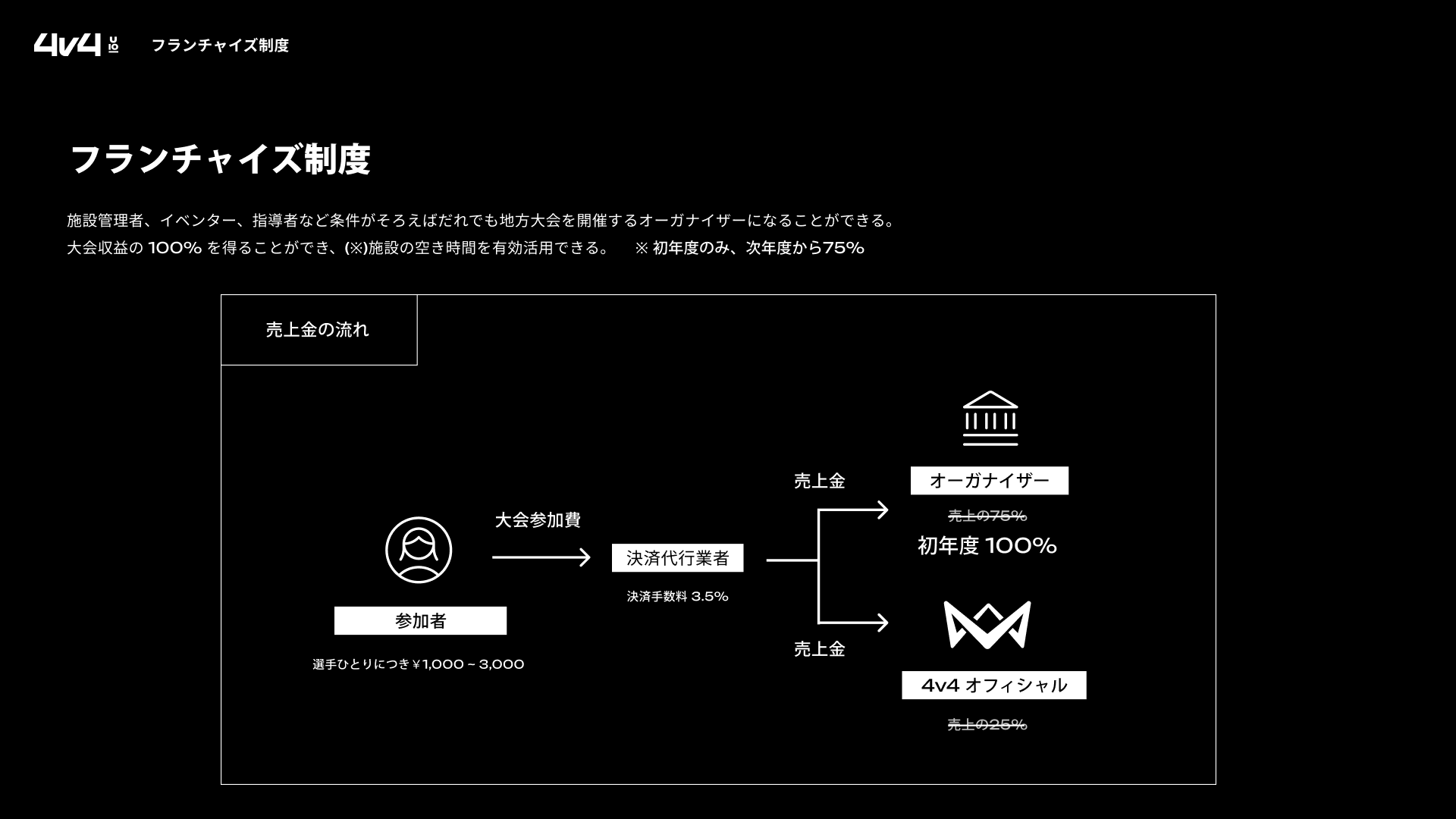 ・大会収益の75%(※初年度は100%)を獲得