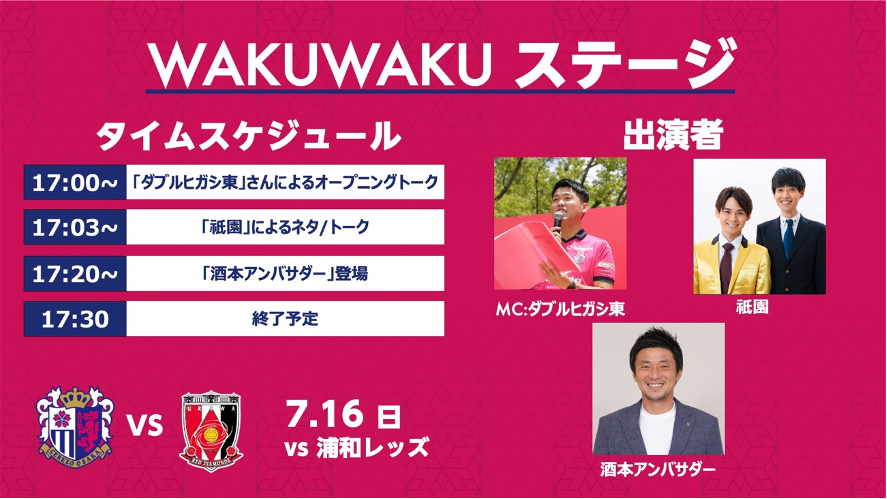 セレッソ大阪では土日祝の試合を中心に、スタジアム場外でもWAKUWAKUを感じていただけるように「WAKUWAKUステージ」を開催いたします。