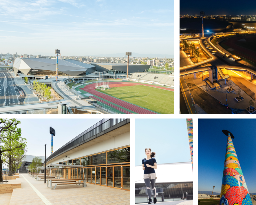 「SAGA2024国スポ・全障スポ」の開催を契機に、さらにその先の佐賀の未来を見据えて整備を進めてきた、新たな価値を創造するエリア「SAGAサンライズパーク」。新時代のエンターテインメントアリーナ「SAGAアリーナ」やカフェ・ショップが入る「パークテラス」、3つのコースを楽しめる「ランニングループ」などが新たに加わり、日常からそれぞれのスタイルで楽しめる心地よい空間に生まれ変わりました。