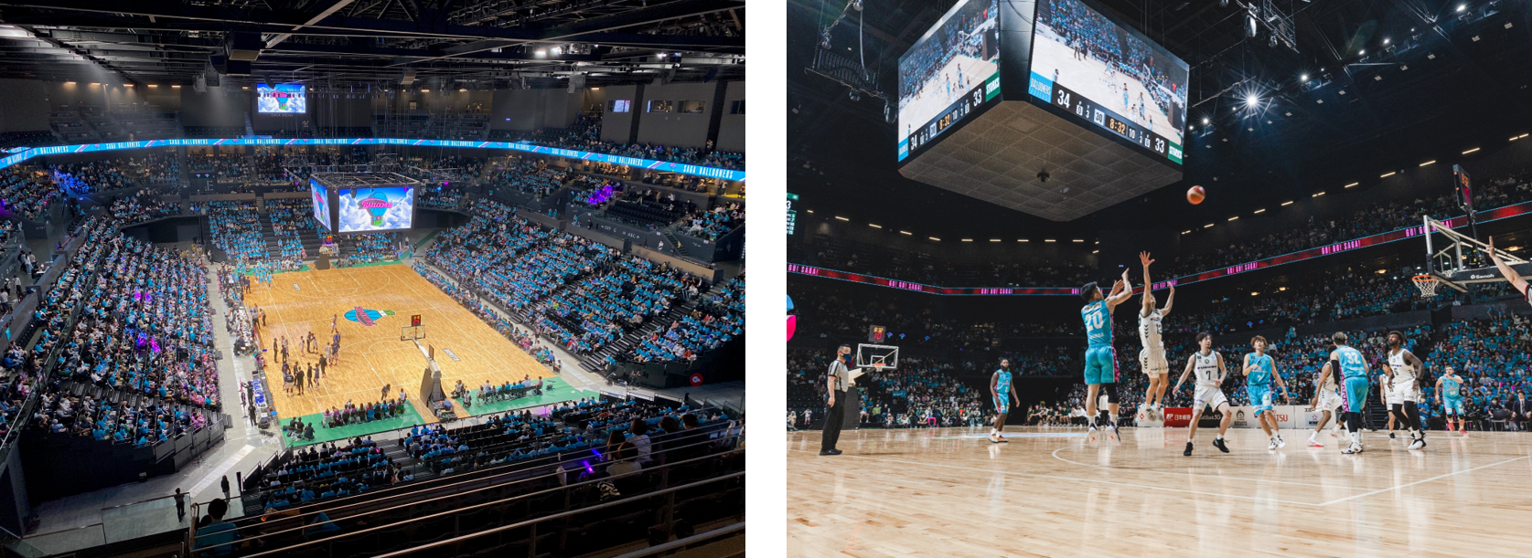 SAGAアリーナは、国内で初めて標準装備した3つの大型ビジョン(センター・リボン・壁面)により、迫力ある映像・光の演出を可能した最高のエンターテインメント空間となっています。今後も土日を中心に2024年度末までは、予約が埋まるなど、好調なスタートを切っています。