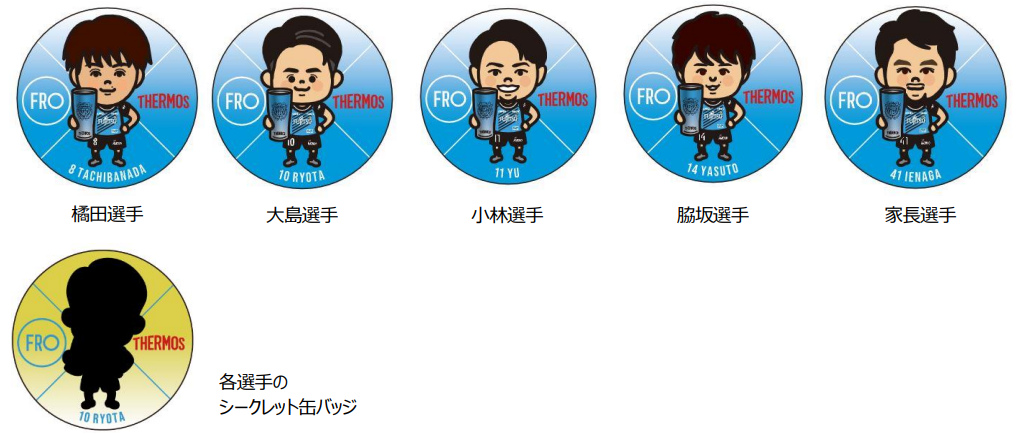 コラボレーション期間中、FRO CAFE(フロカフェ)でドリンクを購入の際、マイボトル、マイタンブラーをご使用いただいた方に、川崎フロンターレの選手(全5選手)のイラスト入りホログラム缶バッジをプレゼントします。(各選手のシークレット缶バッジ有り)