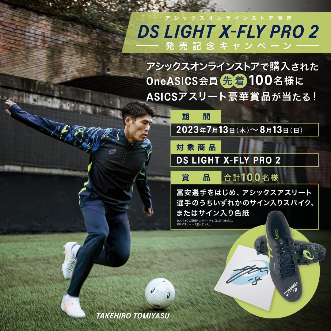今回発売する商品は、アシックスと契約を結ぶ冨安健洋選手(所属:アーセナルFC)が着用予定のモデルで、優れたフィット性がもたらす「素足感覚」と軽さが人気の「DS LIGHT X-FLY」シリーズの最新作です。