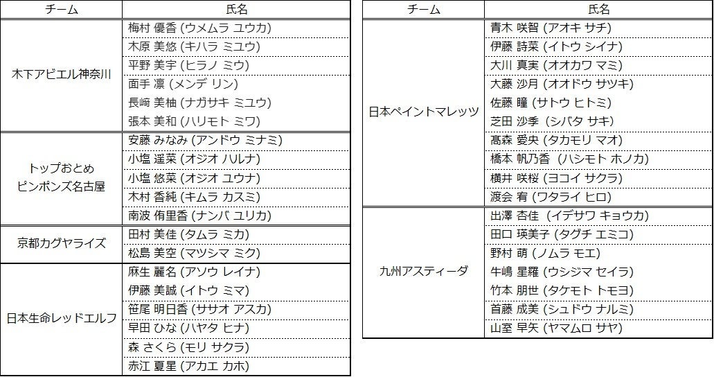 Tリーグでは、2023-2024シーズン 登録完了選手を以下の通りお知らせいたします。