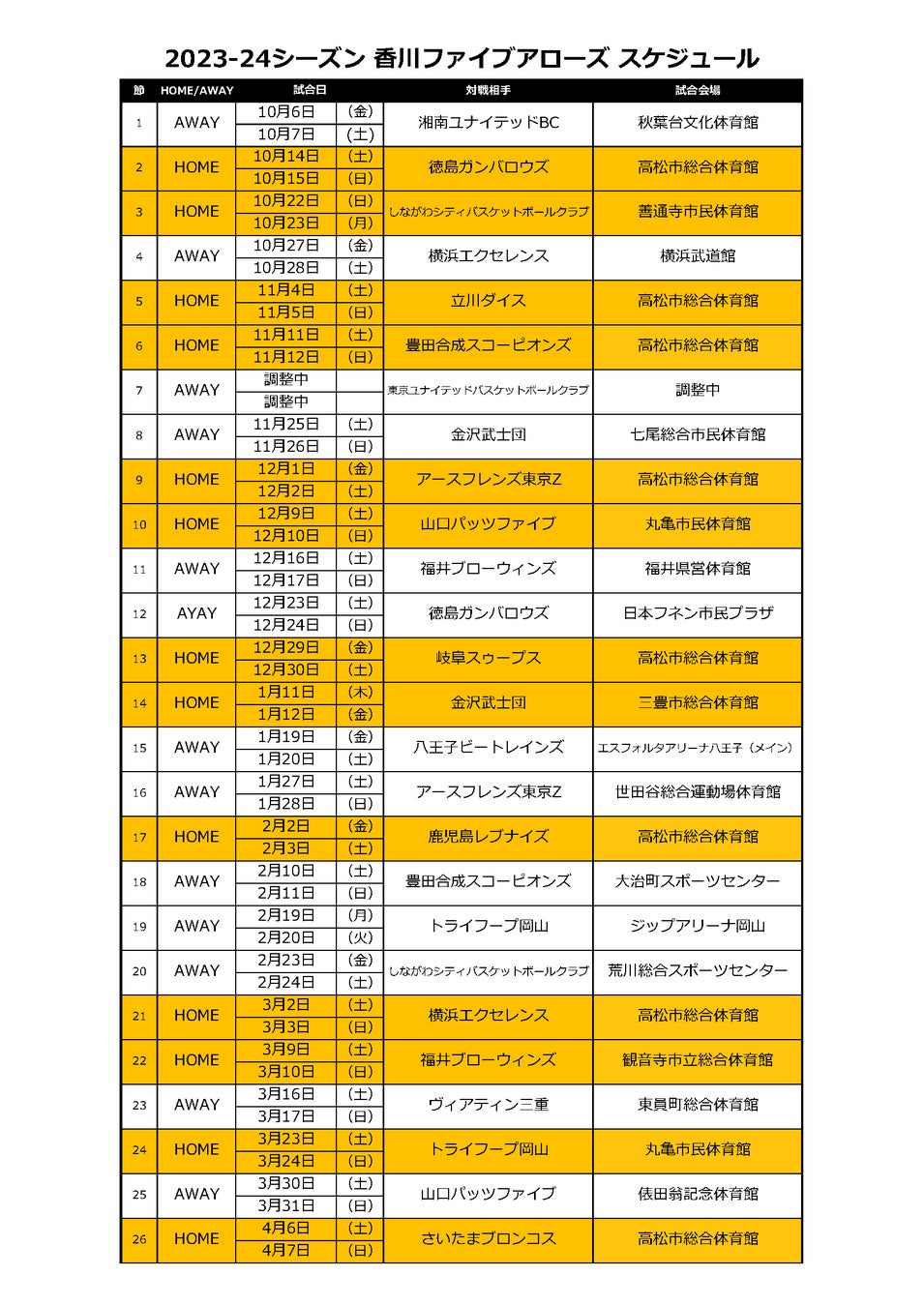 このたび、2023-24シーズンのスケジュールが決定しましたので、お知らせいたします。