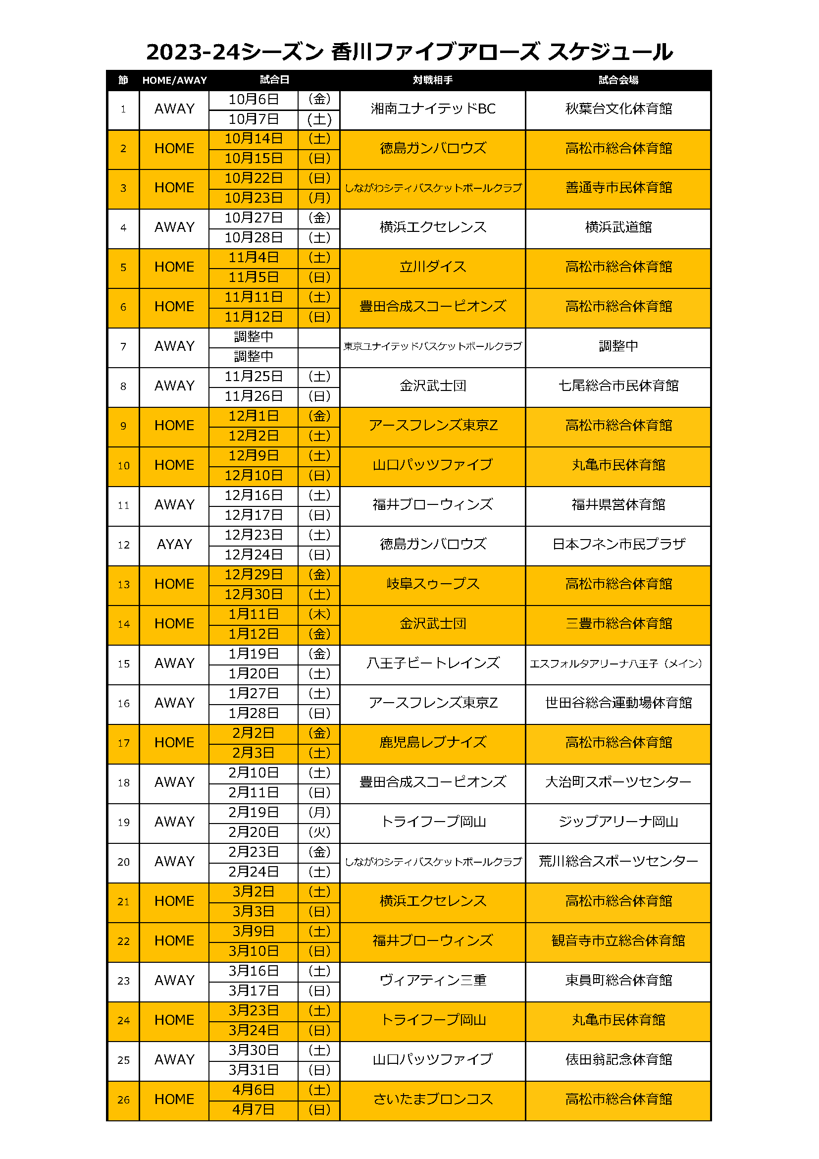 いつも香川ファイブアローズを応援していただき、誠にありがとうございます。