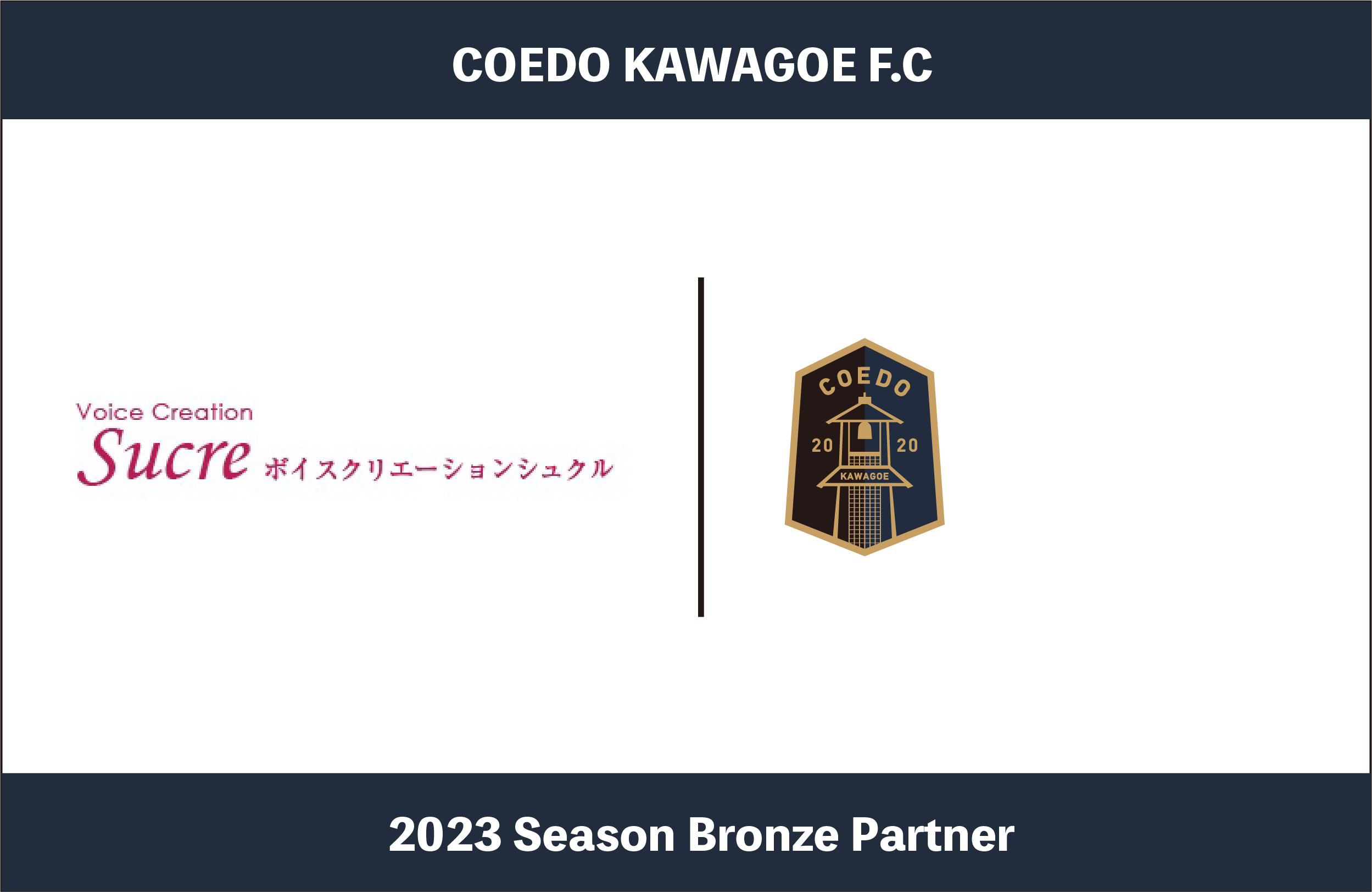 「この度、埼玉県さいたま市に本社を置く、株式会社ボイスクリエーションシュクル様と2023シーズンのブロンズパートナーを締結させていただくご縁をいただいたことをとても嬉しく思います。株式会社ボイスクリエーションシュクル様とのご縁は、埼玉県でスポーツチームとの連携を強化/推進していこうという活動の中で知り合わせていただきました。COEDO KAWAGOE F.Cとしても事業面でもしっかり価値をお返しできるような取り組みを目指して挑戦して参る所存でございます。パートナー契約にあたり、ご尽力頂いた関係者の皆様にもこの場を借りてお礼申し上げます。2023シーズンどうぞよろしくお願い致します!」