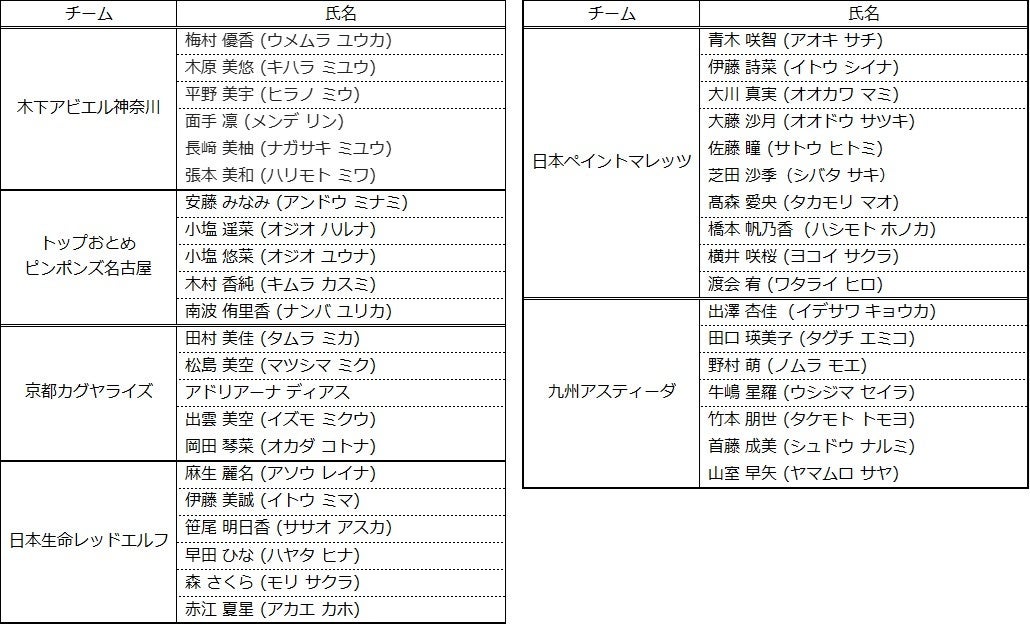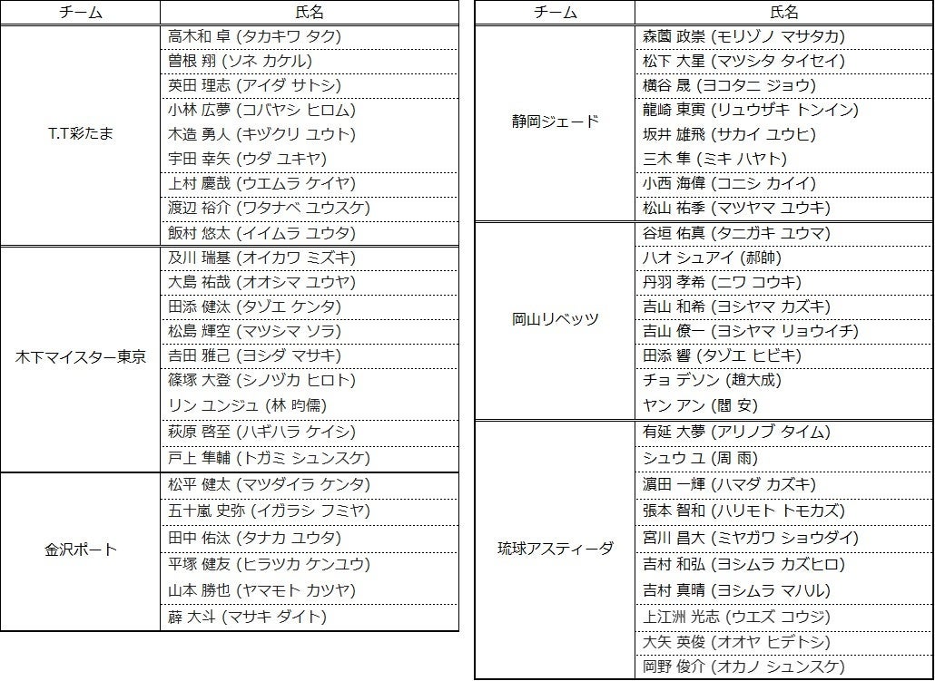 Tリーグでは、2023-2024シーズン 登録完了選手を以下の通りお知らせいたします。