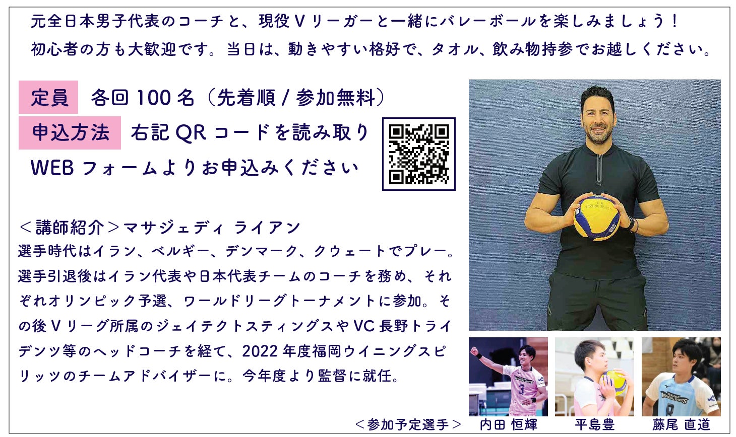 (参考:福岡県内で実施するバレーボール教室の告知イメージ)