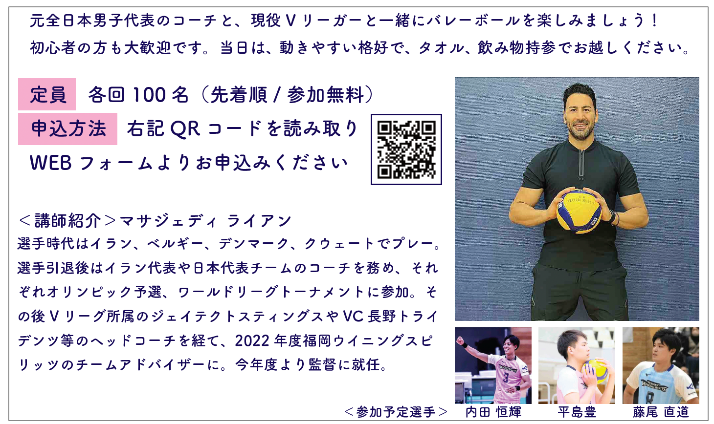 (参考:福岡県内で実施するバレーボール教室の告知イメージ)