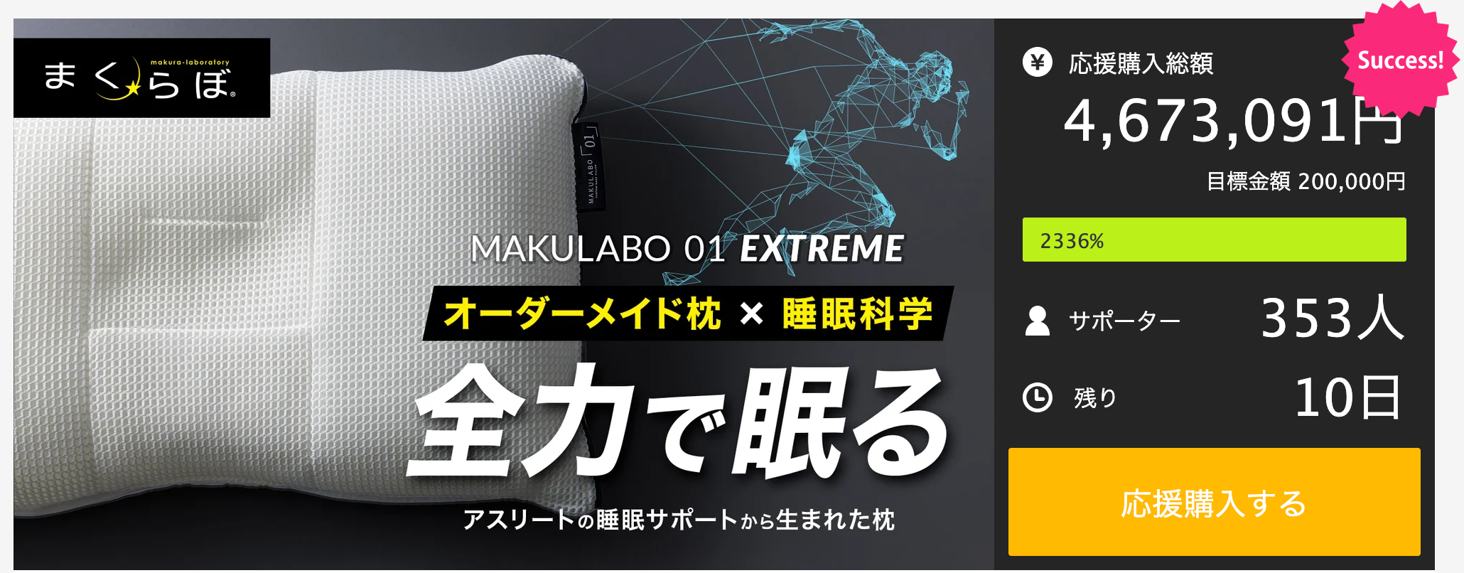 まくらぼは、プロアスリートの睡眠サポートから生まれた枕「MAKULABO 01 EXTREME(まくらぼ ゼロワン エクストリーム)」を2023年6月6日(火)11:00から7月10日(月)まで応援購入サイトMakuakeにて販売しております。