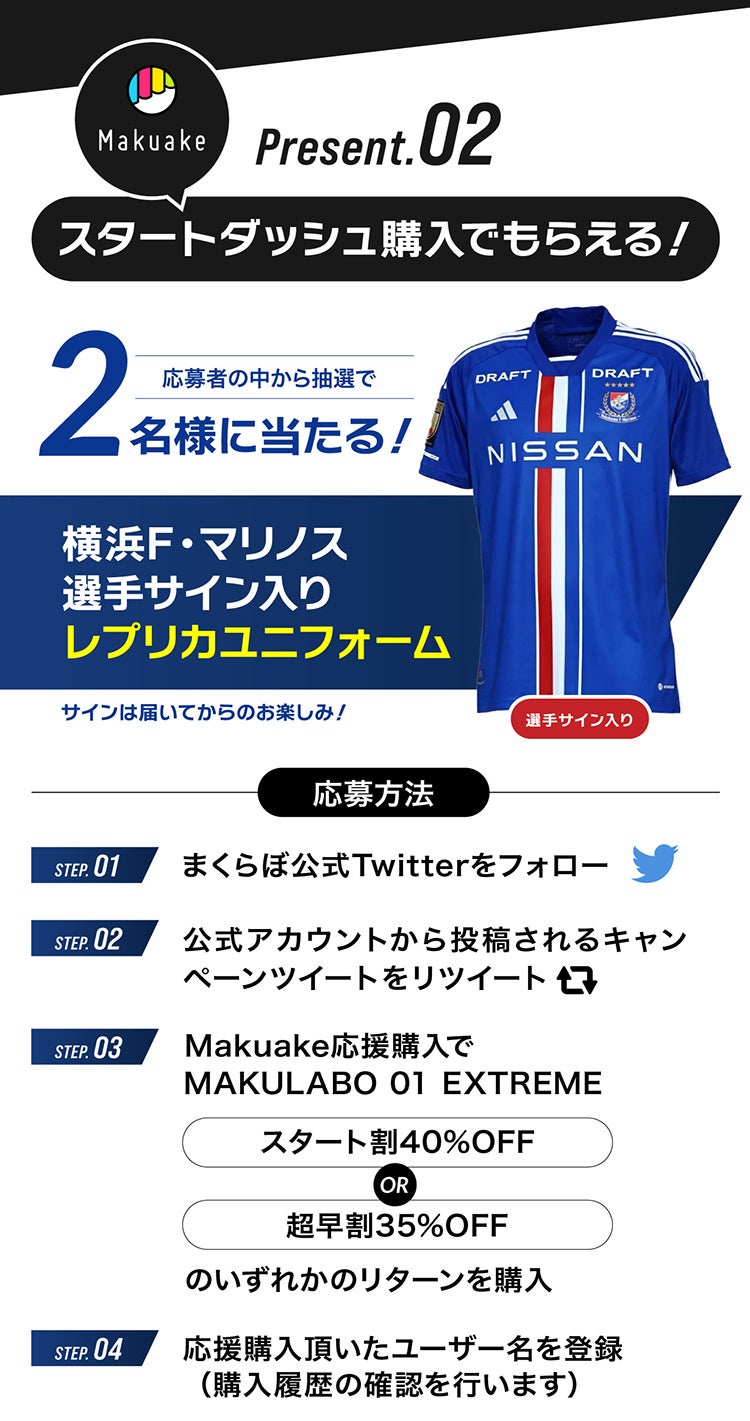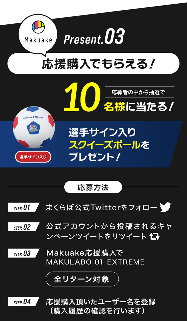 Makuakeで応援購入された横浜F・マリノスのサポーターの方はこちらのキャンペーンも是非、ご活用ください。