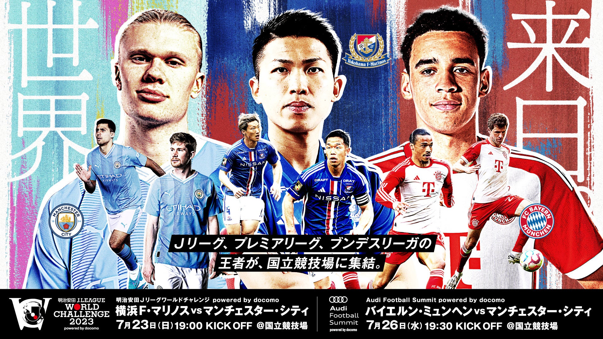 2022明治安田生命J1リーグチャンピオンの横浜 F・マリノスと、世界最高峰のイングランドプレミアリーグを2連覇中であるマンチェスター・シティFCが、国立競技場において2023年7月23日(日)に対戦いたします。また、「Ausi Footbaii Summit」では、マンチェスター・シティ FC とドイツブンデスリーガ10連覇中のFCバイエルン・ミュンヘンが2023年7月26日(水)に対戦いたします。