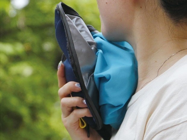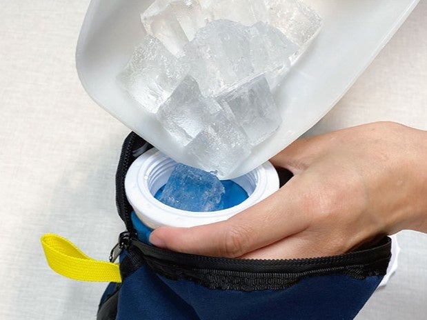氷のうをカバーの中に入れて、フタ部分をカバー内のバンドで固定。氷のうに氷を入れる。