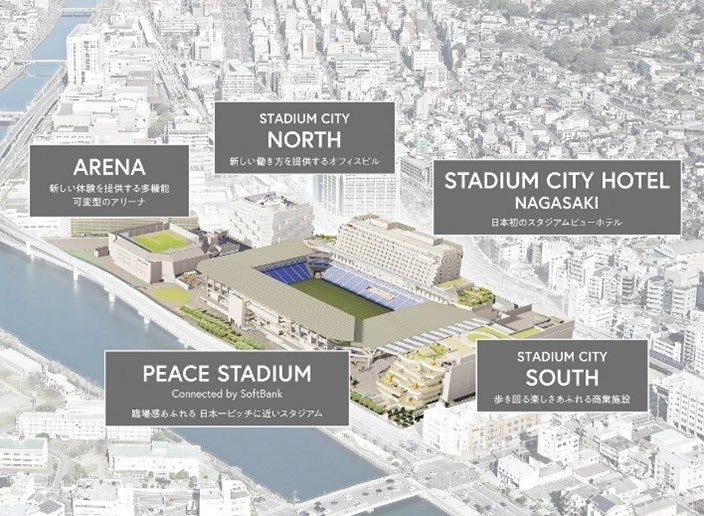 ジャパネットグループで地域創生事業を担う株式会社リージョナルクリエーション長崎(本社:長崎県長崎市/代表取締役社長:岩下英樹)が2024年秋頃の開業を目指し、サッカースタジアムを中心にアリーナ・オフィス・商業施設・ホテルなどの複合施設を民間主導で開発するプロジェクトです。