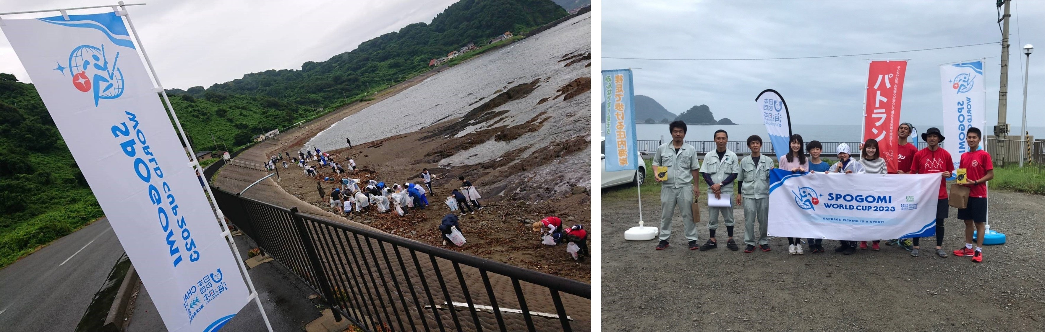 会場の香頭ケ浜は、海水浴場ではないため普段清掃はあまり入らず、防波堤がなく湾になっていることにより、多くのごみが集積していました。海岸沿いをドライブすると、景色と合わせてごみも目に入るこの海岸でしたが、スポGOMIワールドカップ 2023 山形 STAGEを終え、総量474kgを超えるごみを回収し海岸一帯をきれいにすることができました。