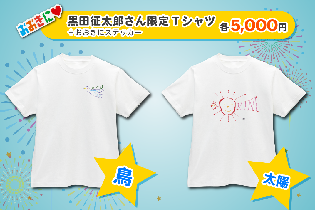ここでしか手に入らない限定Tシャツとおおきにステッカーをセットでお渡しいたします!