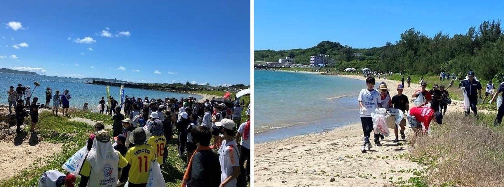 沖縄 STAGE当日の天気は良好!日差しも強く熱中症を予防するために運営判断で1時間のごみ拾い時間を40分に短縮して実施しました。それにも関わらず参加者は砂浜だけでなく茂みの中にも入り込み、奥の奥にあるごみも「ポイントゲットだ!」と収集していきます。しっかりと水分補給をし、ルールを守りながら楽しく集められたごみは201.77㎏!運営の予想をはるかに上回るものでした。今大会の会場である照間海岸は金武湾という内海に面している海岸です。ごみが溜まりやすい構造のこの海岸を掃除することで台風などによるごみの流出も防ぎ、沖縄全体のごみ削減に繋げられたのではないかと思います。