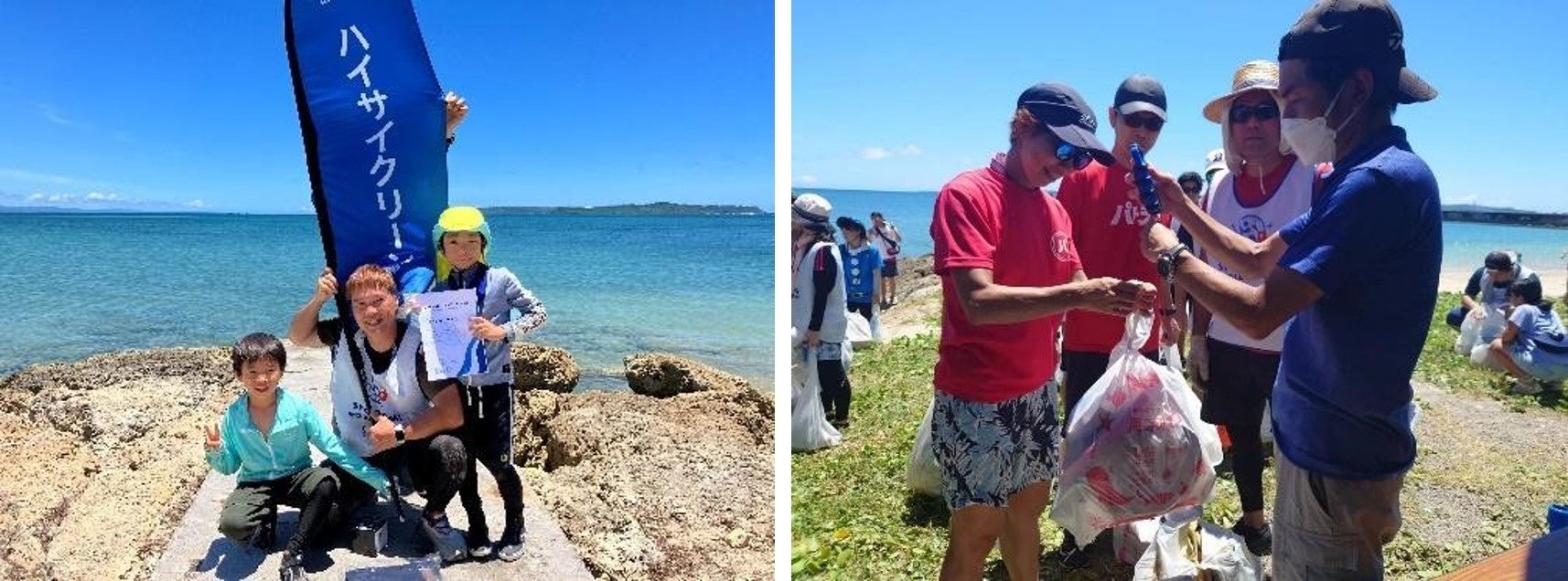 海に囲まれた沖縄県。海岸に落ちているごみは私たちが出してしまうごみ、海から流れついて漂着するごみ等、想像をはるかに越える量になります。元々沖縄は「海は県民の財産」と考えている人も多く、海の大切さは子どものころから学びます。清掃活動をするボランティア団体も多いですが、範囲が広すぎて拾い切れていないのが現状です。そんな中今回集まったのは海が大好きな友達グループ、企業チーム、家族連れはもちろん、海を守っていただいている海上保安庁の皆さん、そして各方面で普段からごみ拾い活動をしているボランティア団体の皆さんなど多数の方々が参加しました。総勢39チーム117人!応援も駆けつけ、ビーチは大賑わいでした。想定を上回る参加者を盛り上げてくれたのは、司会のお笑い芸人ゴリラコーポレーションのお二人。笑いも交えながら、会場の照間海岸の特別ルールも説明していただきました。