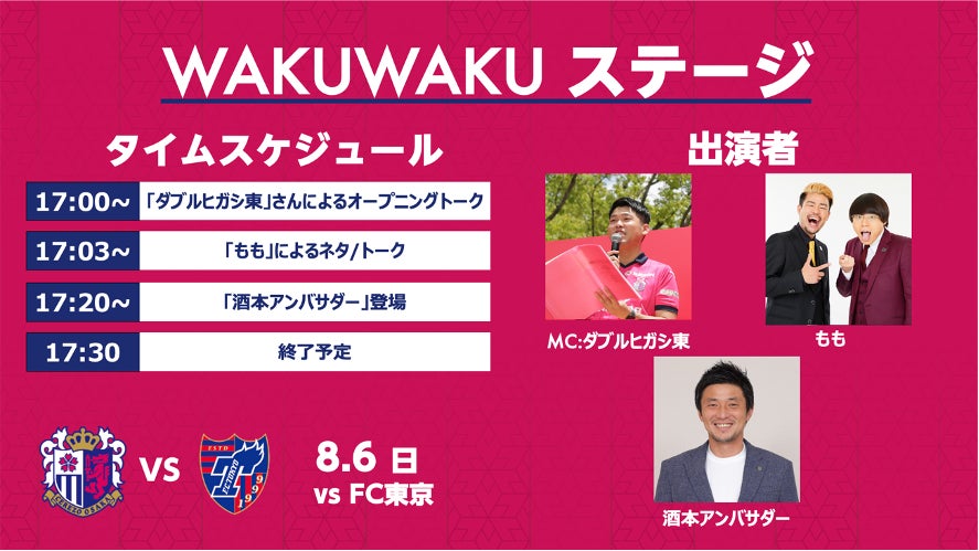 セレッソ大阪では土日祝の試合を中心に、スタジアム場外でもWAKUWAKUを感じていただけるように「WAKUWAKUステージ」を開催いたします。