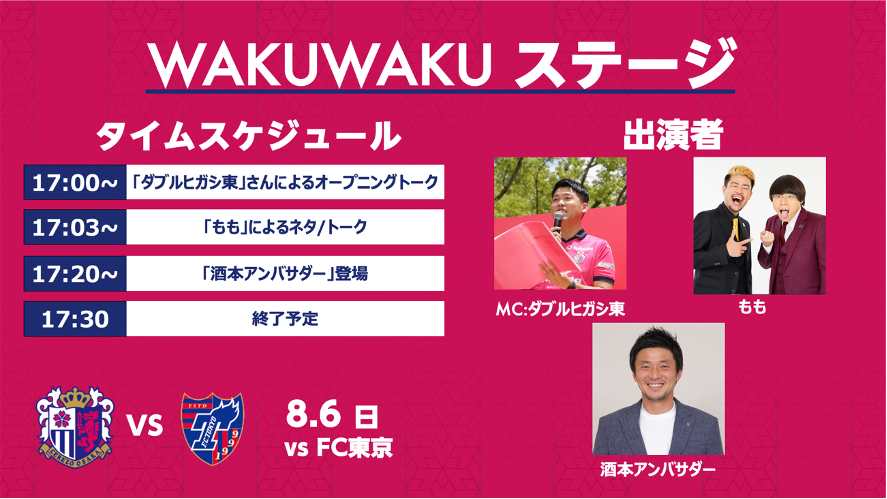 セレッソ大阪では土日祝の試合を中心に、スタジアム場外でもWAKUWAKUを感じていただけるように「WAKUWAKUステージ」を開催いたします。