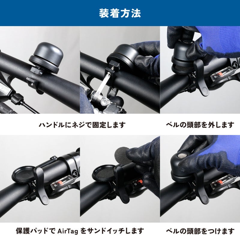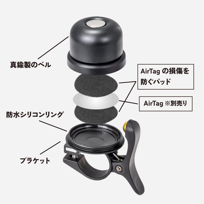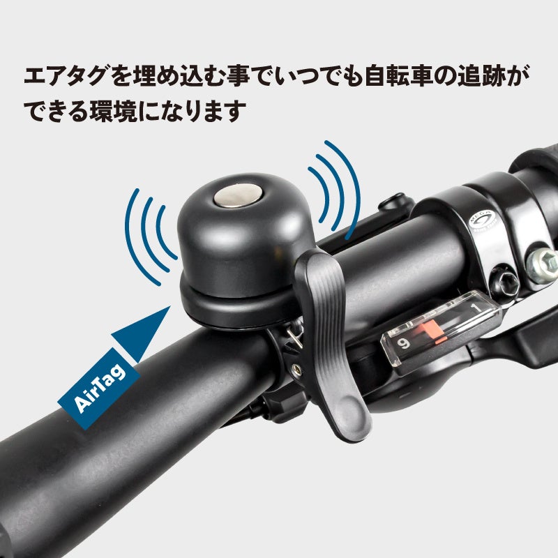 自転車に埋め込みできるAirTag用ケースカバーで、ベルの中に隠せるタイプです。