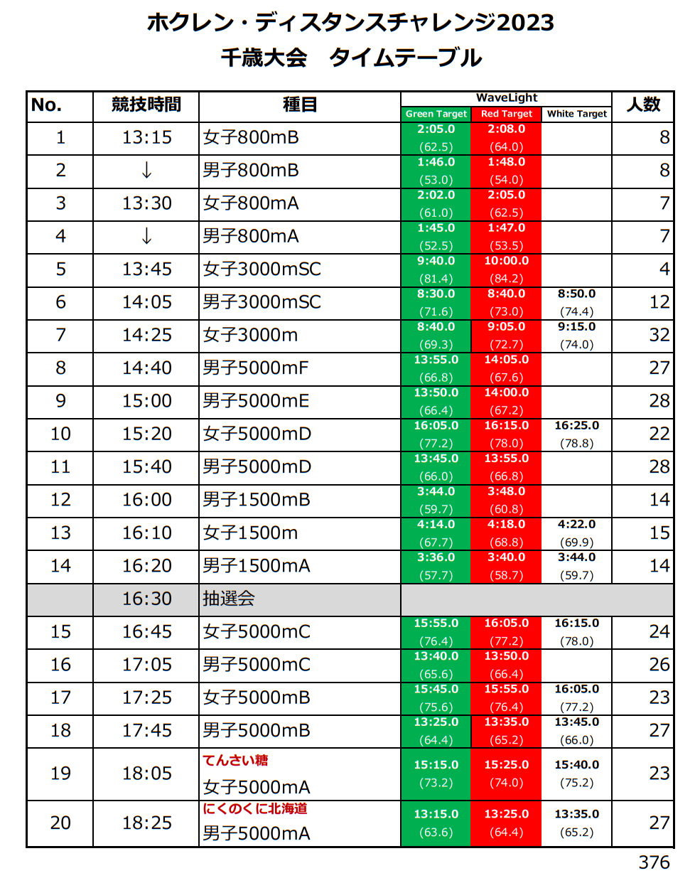 (各大会のスタートリスト情報&タイムテーブルはこちら)