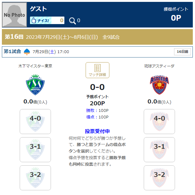 予想を投票することで応募は完了します。