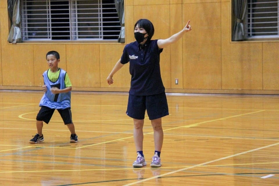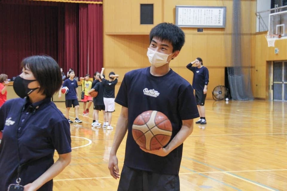 7月4日(火)知立市立知立中学校にて「総合型地域スポーツクラブ(知立みなみスポーツ・文化クラブ)対象~バスケットボールクリニック~」を開催し、嶋田基志U15・アシスタントコーチ、平武幸U15・サポートスタッフ、原田梨世U18・マネージャーが講師として参加いたしました。
