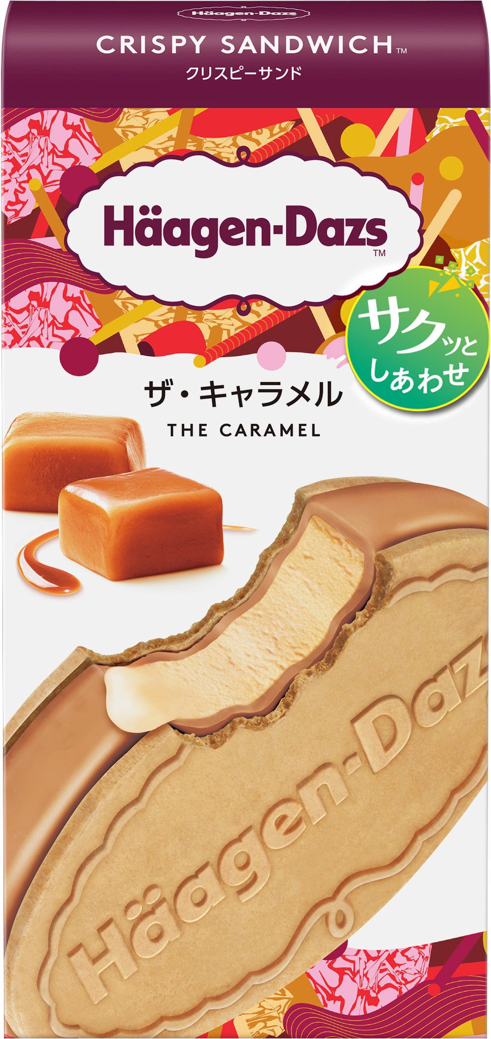 キャラメルのおいしさにこだわり抜いた“これぞキャラメル”という味わいのクリスピーサンド。通年でお楽しみいただける定番のフレーバーです。