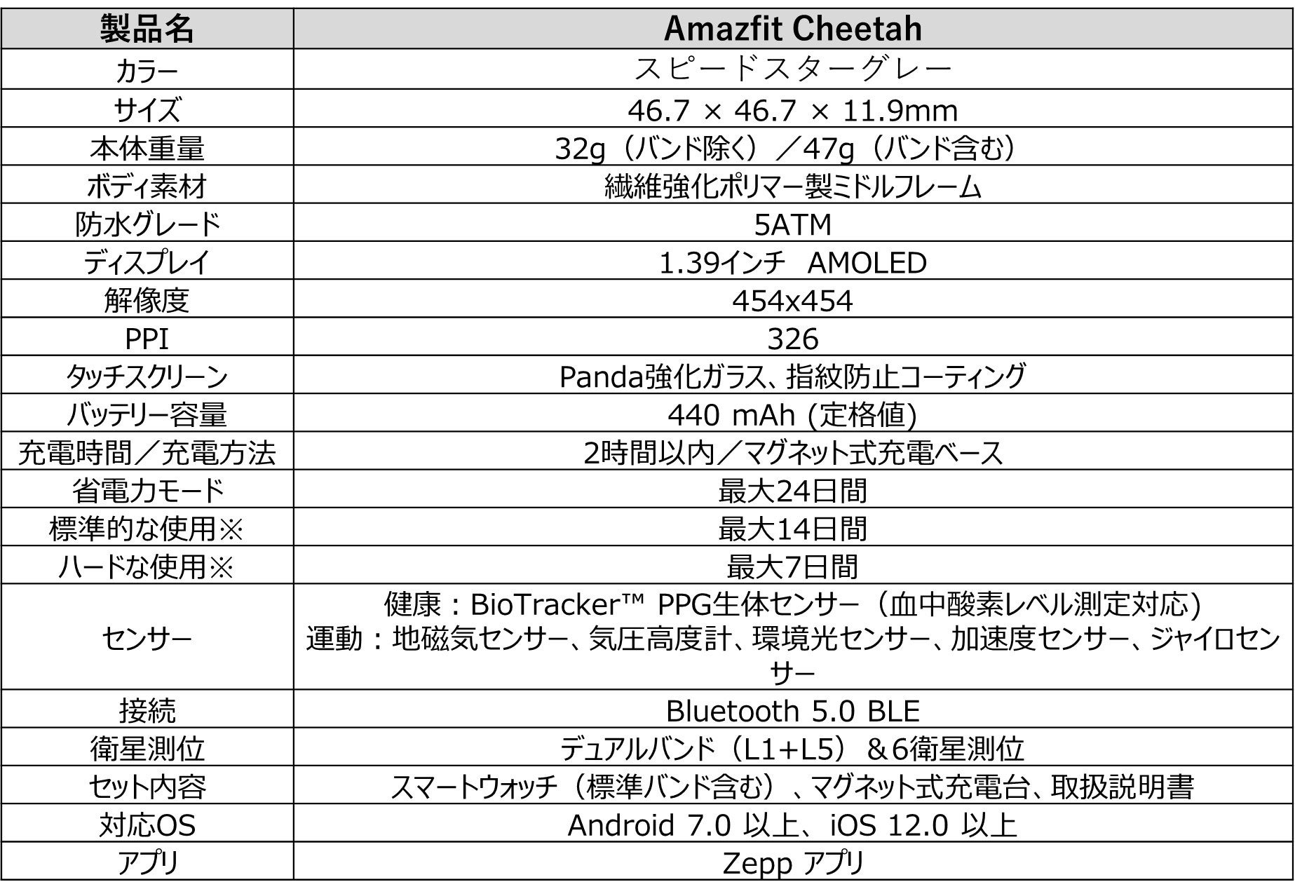 公式オンラインストア:https://www.amazfit.jp/products/amazfit-cheetah