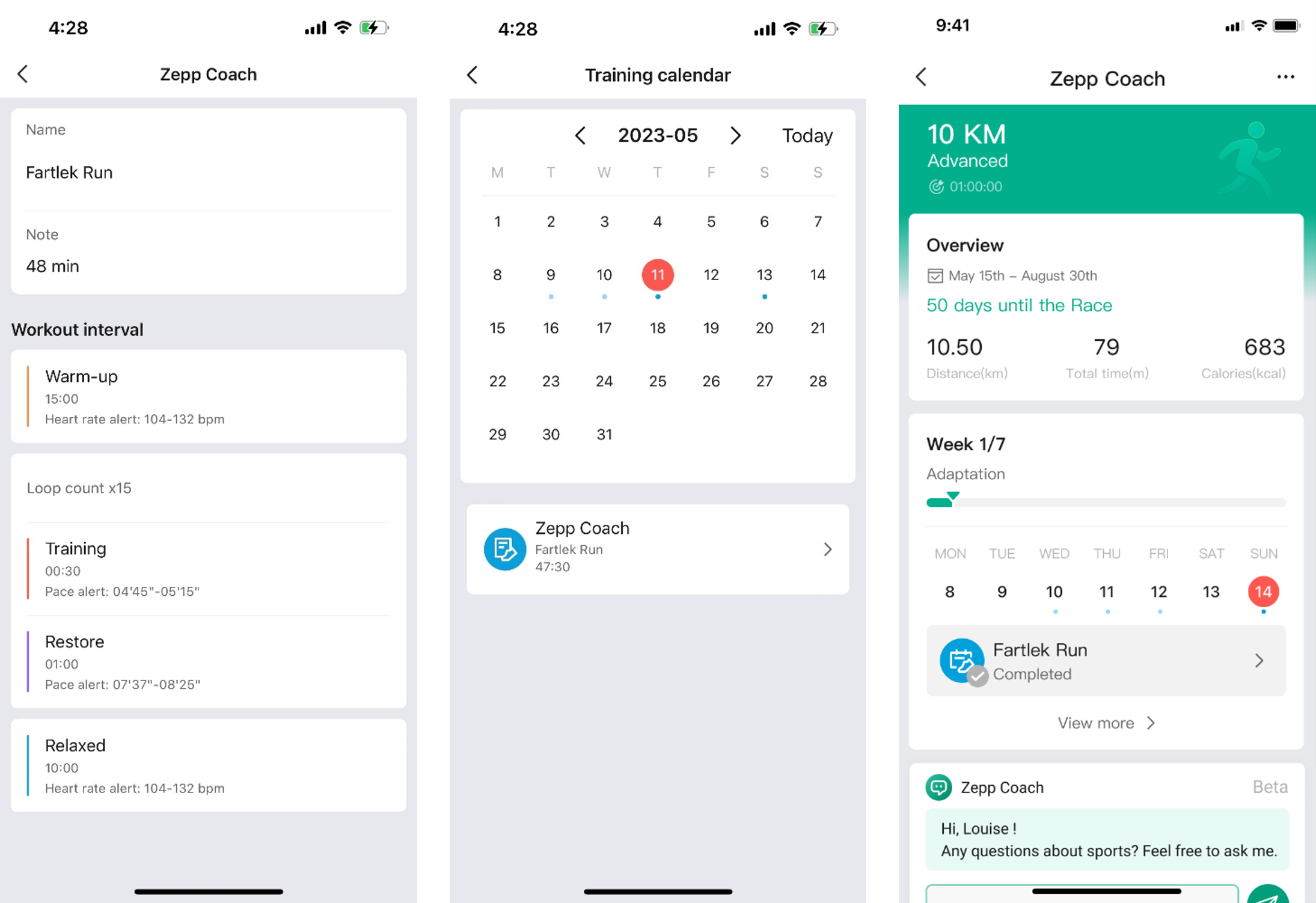 Amazfit Cheetah シリーズ用にアップグレードされたZepp Coach ™2.0 は、 AI の力を利用して、あなたの目標に合わせた個別のランニングプランを提供します。提案されるトレーニングプランは現在のランニングレベル、目標とするレースの日付と距離、およびレース目標に基づいて生成され、オーバートレーニングの予防や段階的なトレーニングレベルの向上、大事なレースに理想的な状態で臨むサポートとして役立ちます。