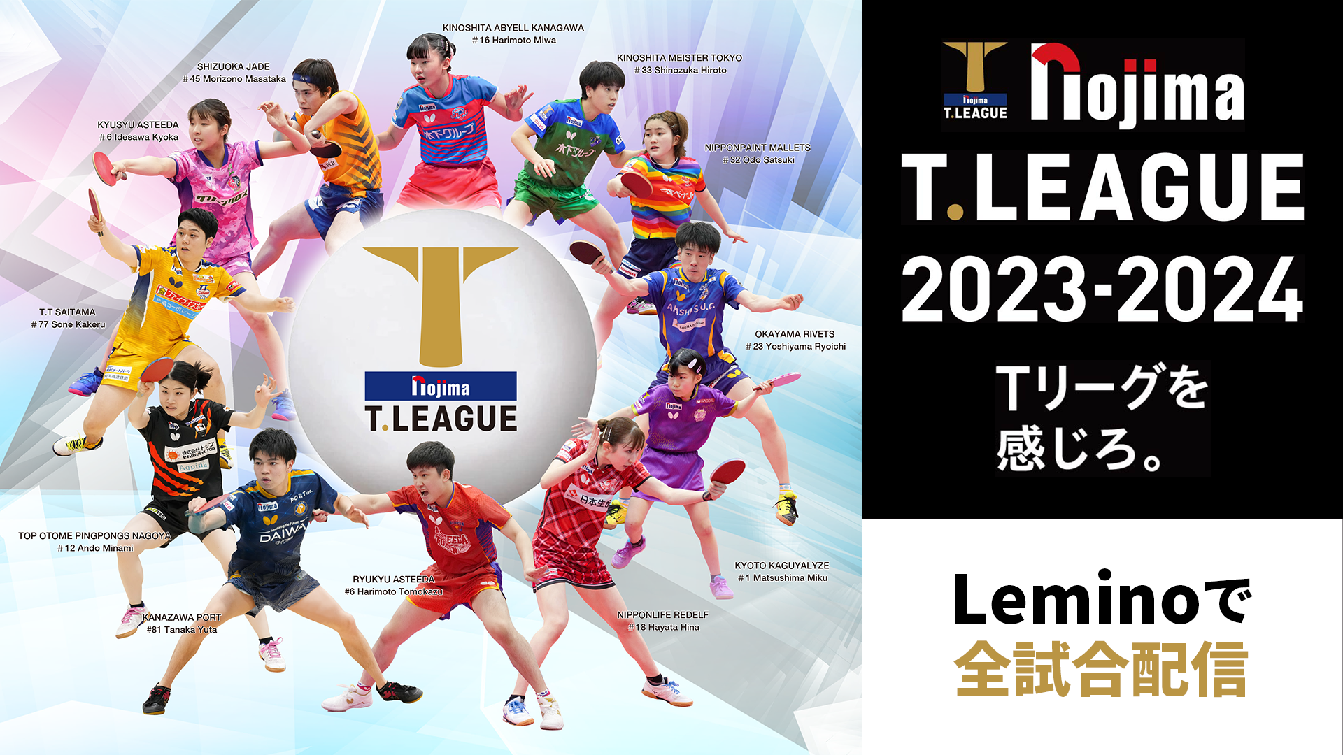 最後に日本最高峰の卓球プロリーグ「ノジマTリーグ」では、2023-2024シーズンの男子・女子開幕戦を無料配信。日本のトップ選手や世界ランカーが卓上で繰り広げるスピード感と迫力溢れるプレーは、観戦者が思わず息を飲んでしまう緊張感を味わうことができます。また月額有料会員の「Leminoプレミアム」では、レギュラーシーズン全120試合、プレーオフセミファイナル、プレーオフファイナルも配信いたします。(一部試合は無料配信予定です。)